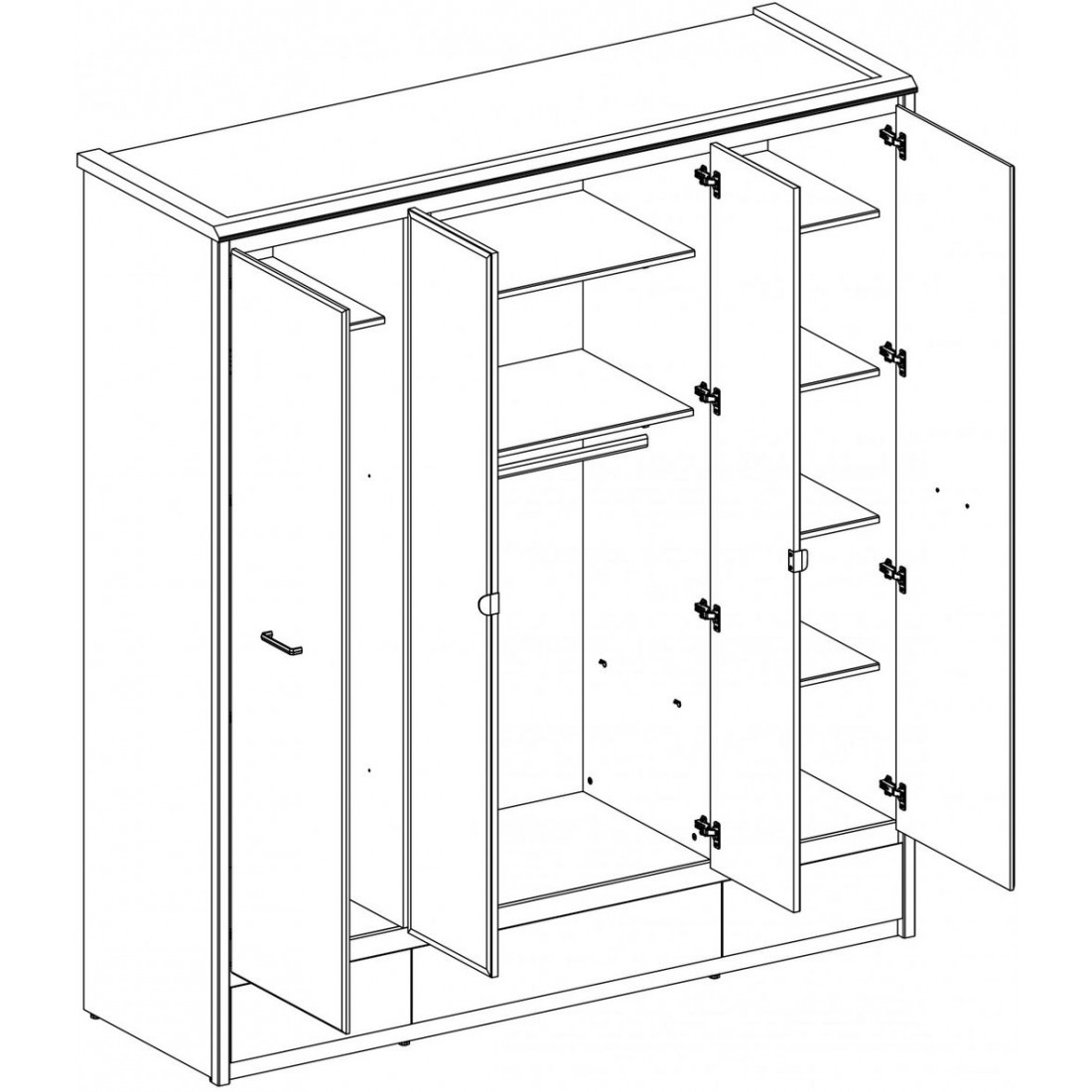 Четырехстворчатый шкаф для одежды с зеркалом Бьёрк 4DG3S Z