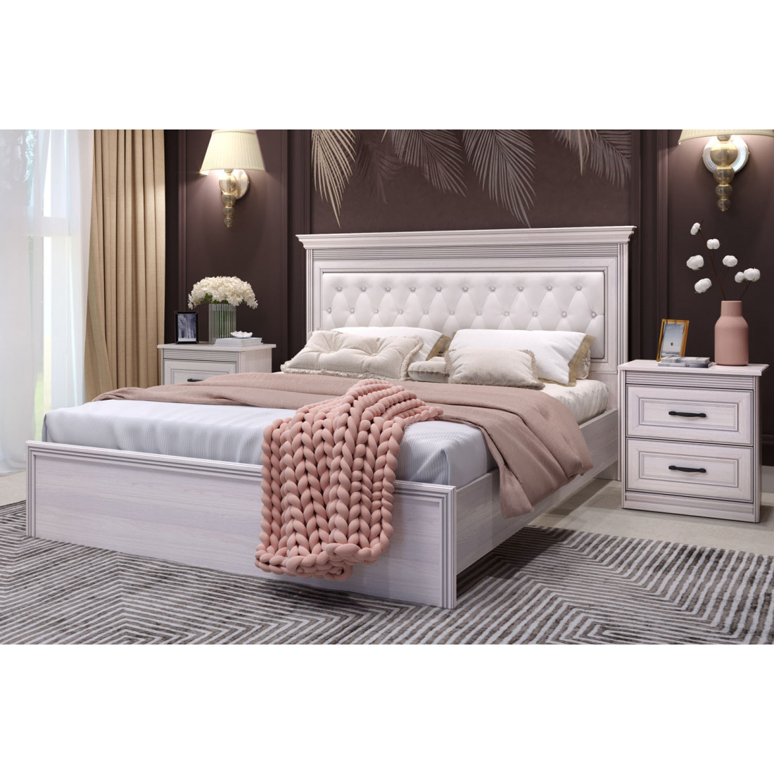 Кровать 1400/1600/1800 с ортопедическим основанием Неаполь Ясень анкор светлый (патина "серебро") экокожа polo белая