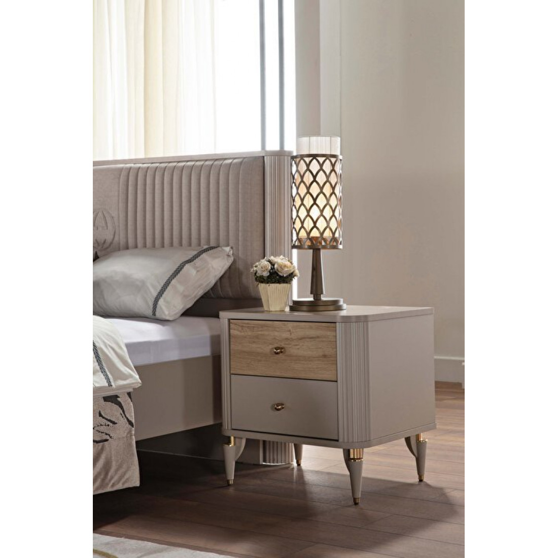 В цветовой гамме спального гарнитура Sanvito предпочтение отдается кремовому и ореховому цветам.