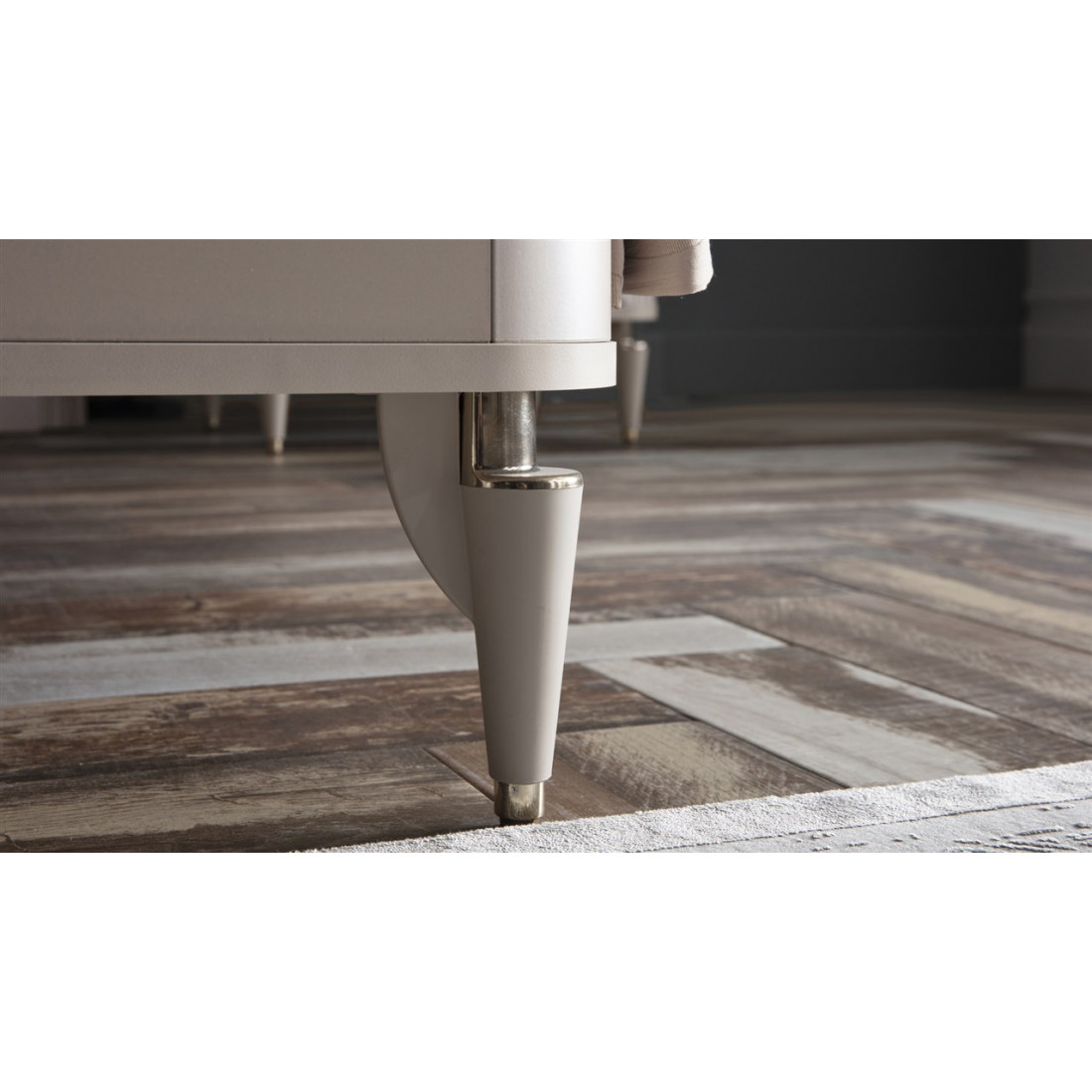 Золотистая поверхность с блестящим эффектом используется на ручках, верхней и нижней частях ножек. С